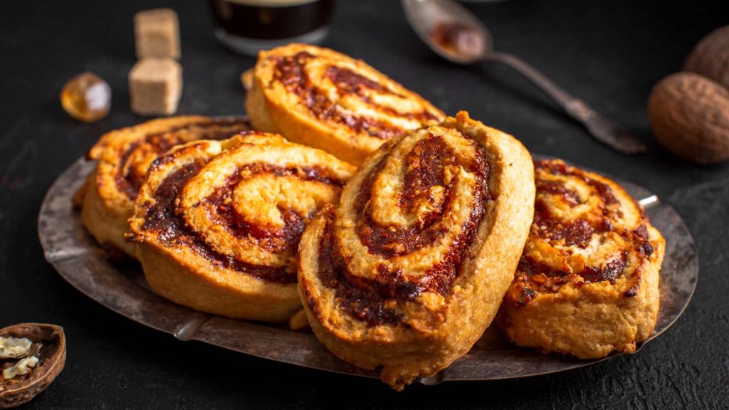 Fluffy cinnamon rolls filled with juicy peaches and crumble topping.